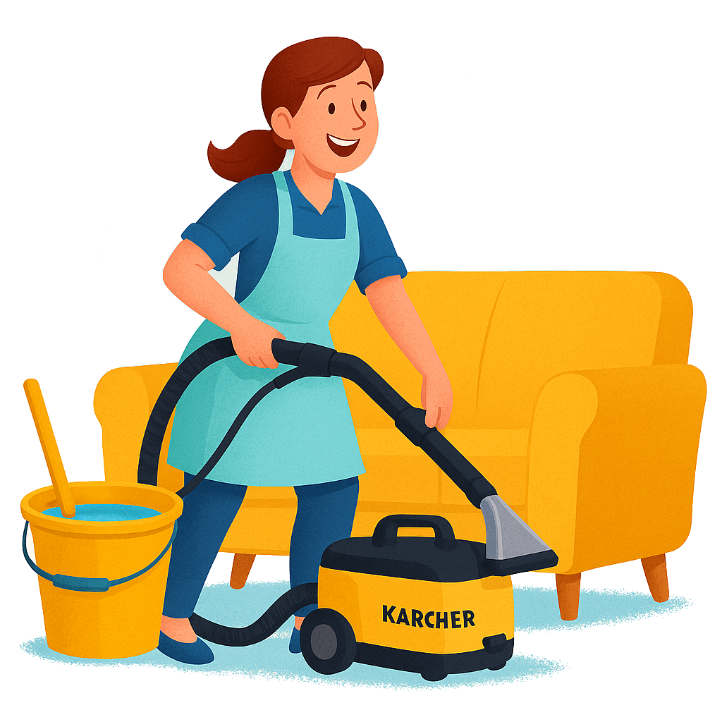 Korzystam ze sprawdzonego sprzętu marki Karcher i bezpiecznych środków firmy Maxifi, które skutecznie radzą sobie z zabrudzeniami, a przy tym są delikatne dla tkanin i bezpieczne dla domowników.